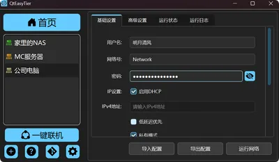 QtEasyTier1.1.0 版本新增一键联机功能,无需动手配置,自动生成房间号,与好友轻松联机。